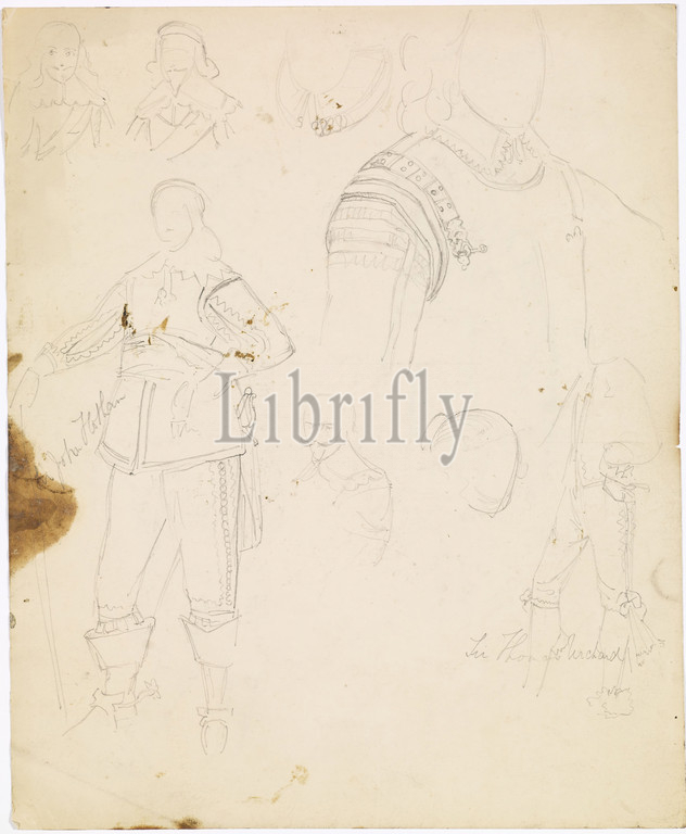 Verso Studies, Scottish costume, 1840-1850 William Holman Hunt, sheet, costume studies, studies, Scottish costume, Vol, II, plate 15, Clans, Scottish Highlands, Ackerman & Co, 1847, side, study, collar, Sir Henry Lee, painting, Dr Rochecliffe, now, private collection, Costume, Drawing, Ink, Pencil, Scotland, Sketch, Pre-Raphaelite, Male, Clothing