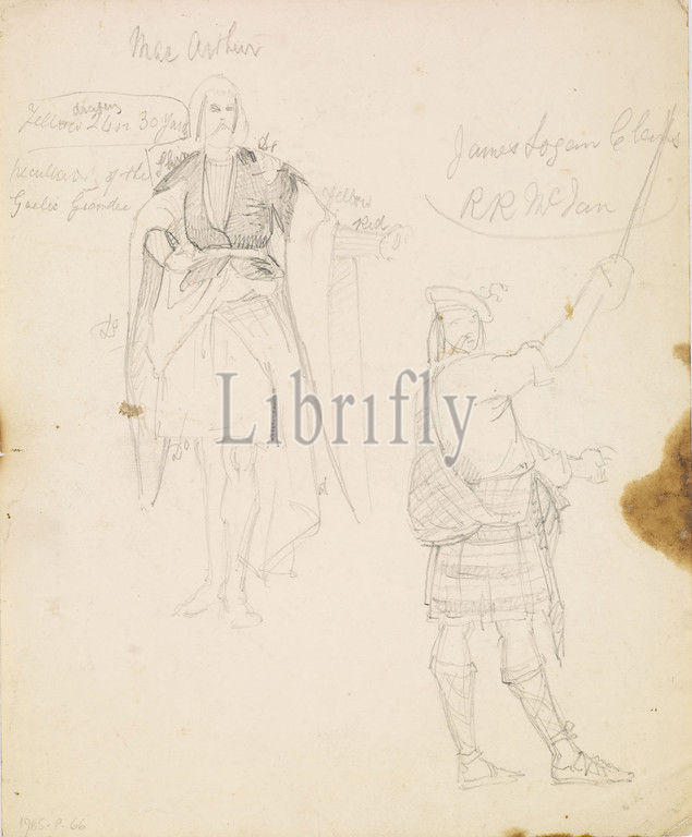 Verso Studies of Scottish costume, 1840-1850 William Holman Hunt, A sheet of costume studies. Including studies of Scottish costume from Vol. II, plate 15 of the 'Clans of the Scottish Highlands' (Ackerman & Co, 1847). On the other side a study that may be for the collar of Sir Henry Lee in the painting 'Dr Rochecliffe' now in a private collection (Bronkhurst Cat.45)., Costume, Drawing, Ink, Pencil, Scotland, Sketch, Pre-Raphaelite, Male, Clothing