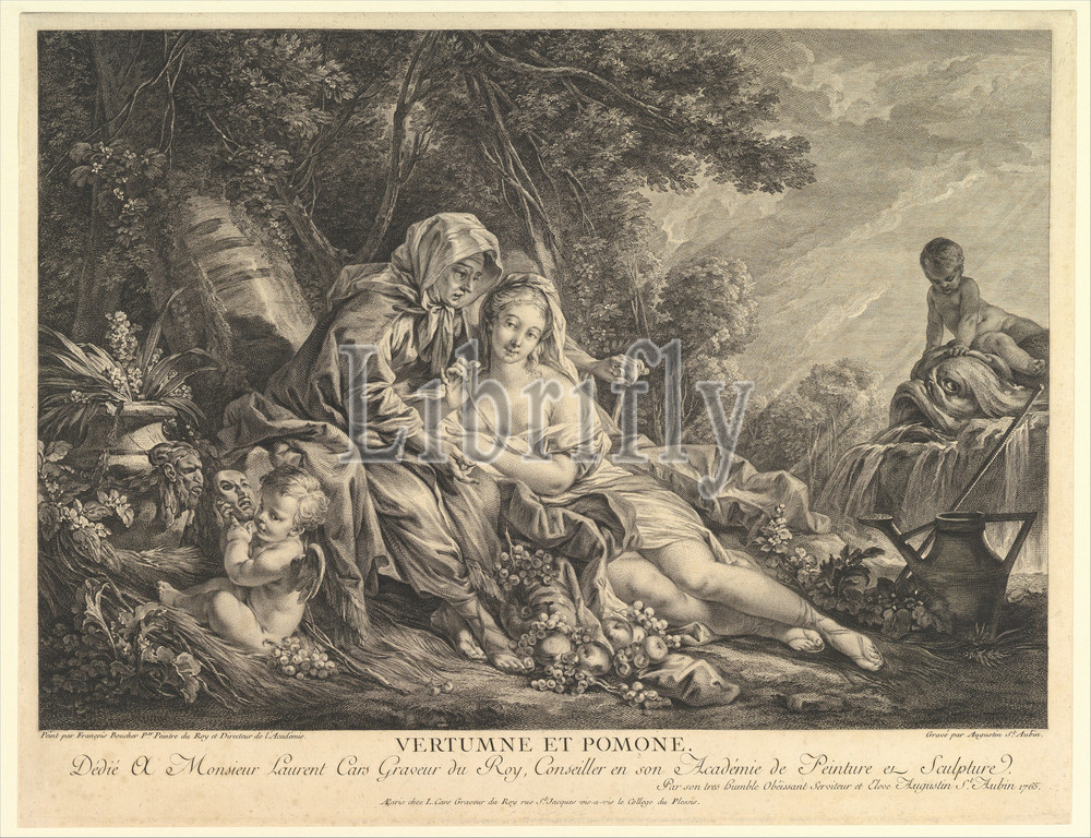 Vertumnus, Pomona, 1765, Etching, engraving, third state, three, Bocher, Sheet, 14 3/8, 18 1/2, 36.5, 47 cm, Prints, Augustin de Saint-Aubin, French, Paris, 1736–1807, After François Boucher, 1703–1770