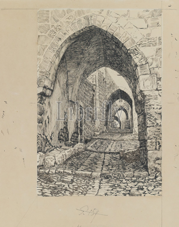Via Dolorosa, Life, Our Lord Jesus Christ, La Vie de Notre-Seigneur Jésus-Christ, James Tissot, French, 1836-1902, Ink, graphite, paperboard, 1886-1887, 1889, Image, 9 1/16 x 6, 23 x 15.2 cm, 19th Century, arch, cobblestone, drawing, French, street, Tissot