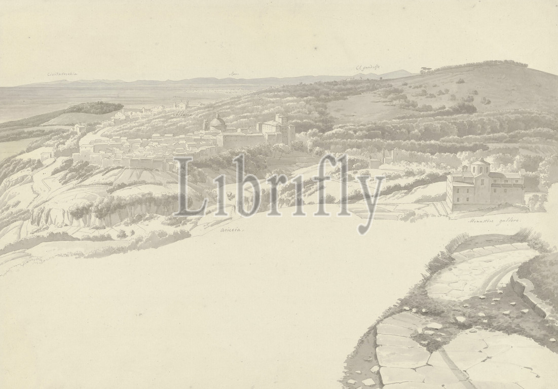 View, Ariccia, Genzano View, Drawing, group, 46 drawings, studies, mainly cityscapes, landscapes, Rome, Low hill country, Josephus Augustus Knip, Italy, c, 1810, paper, graphite, mineral, watercolor, paint, brush