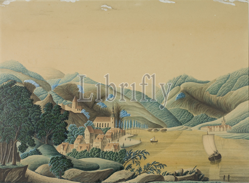 View of Braubach, n.d., Ernst Damitz, American, born Germany, 1805-1883, United States, Watercolor on ivory wove paper (discolored to tan), 338 x 461 mm