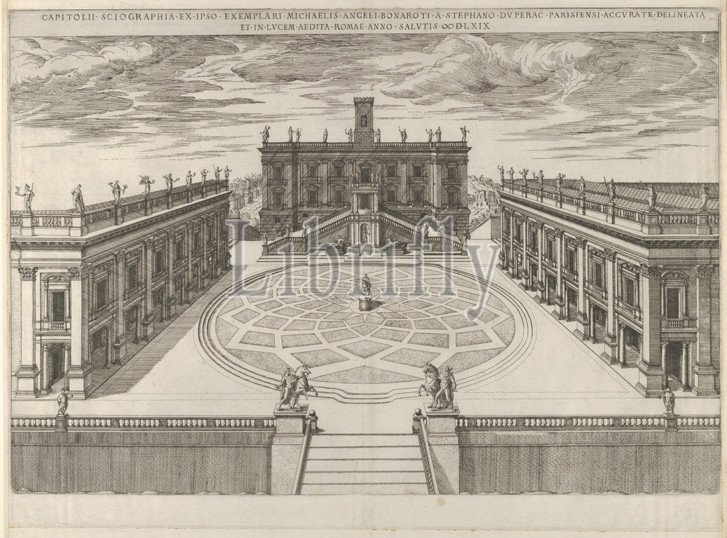 View, Campidoglio, re-designed, Michelangelo, Speculum Romanae Magnificentiae, 1569, Etching, engraving, Mount, 18 1/8, 22 1/4, 46, 56.5 cm, Prints, Etienne DuPérac, French, ca., 1535–1604