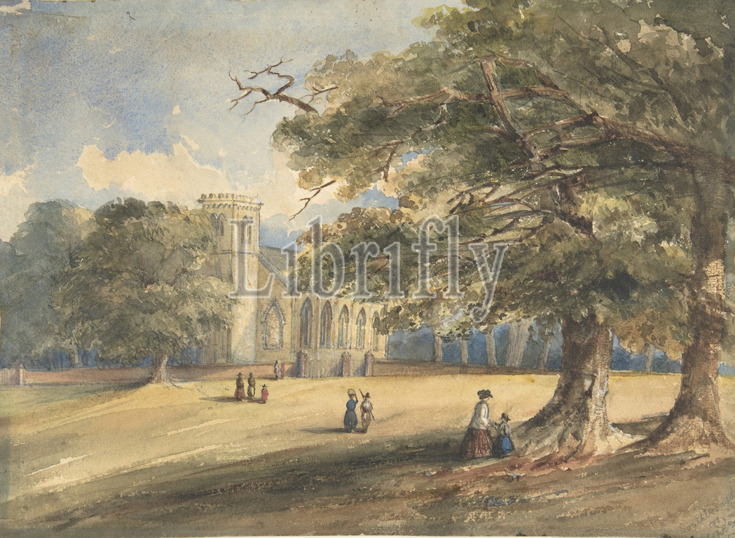 View, Churchyard, Southborough, Kent, 1837, Watercolor, graphite, touches, gouache, paper, 10 x 14, 25.4 35.6 cm, Drawings, Anonymous, 19th century