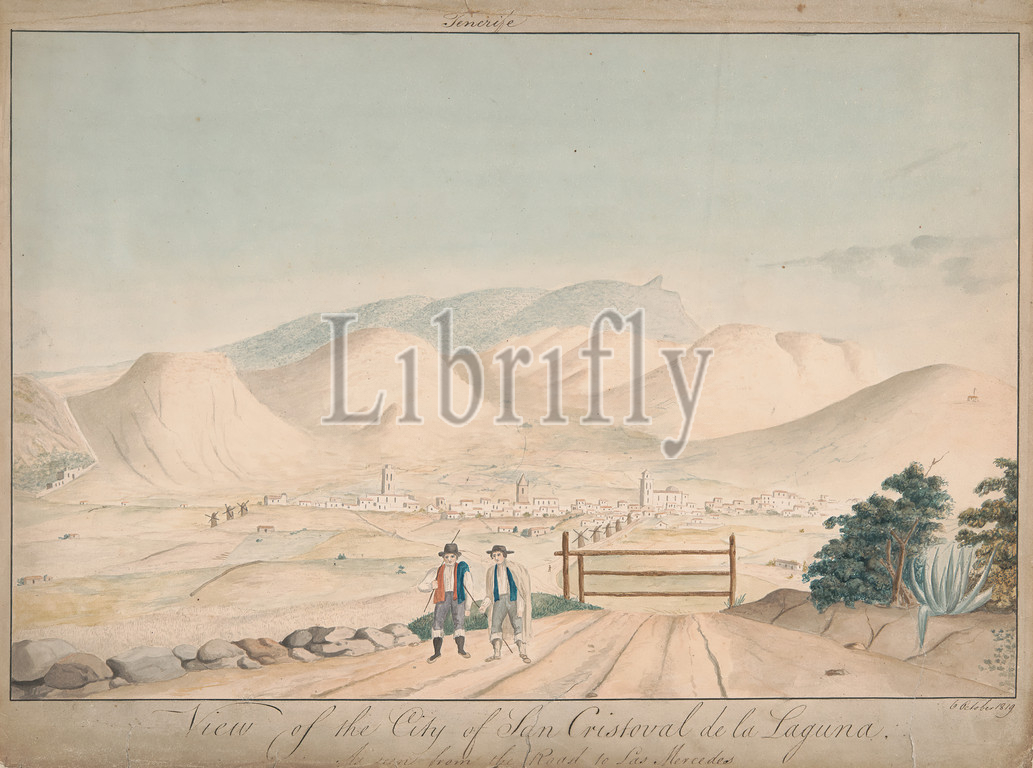View, City, San Cristoval de la Laguna, Road, Las Mercedes, Alfred Diston, active 1818–1829, 1819, Pen, ink, watercolor, moderately thick, smooth beige wove paper, Sheet, cityscape, España, San Cristóbal de la Laguna, Spain, Tenerife