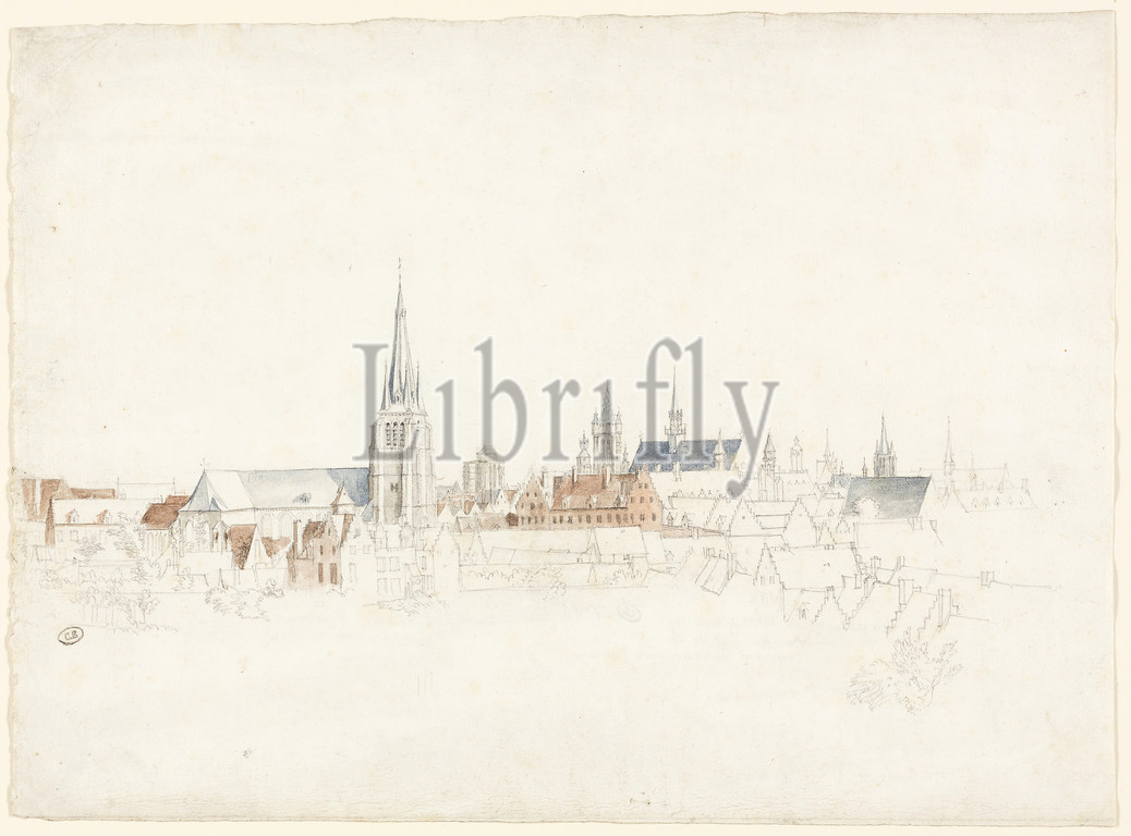 View of Douai, 1667–70, Adam Frans van der Meulen, Flemish, 1632-1690, Flanders, Graphite, with watercolor, on ivory laid paper, 303 × 414 mm