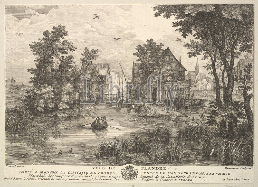 View of Flanders (Veue de Flandre) after the painting in the collection of Madame la Comtesse de Verrue, Etching and engraving, Sheet: 7 3/8 x 10 5/16 in. (18.7 x 26.2 cm), Prints, Pierre François Beaumont (French, 1719 ?–after 1777), After Jan Brueghel the Elder (Netherlandish, Brussels 1568–1625 Antwerp)