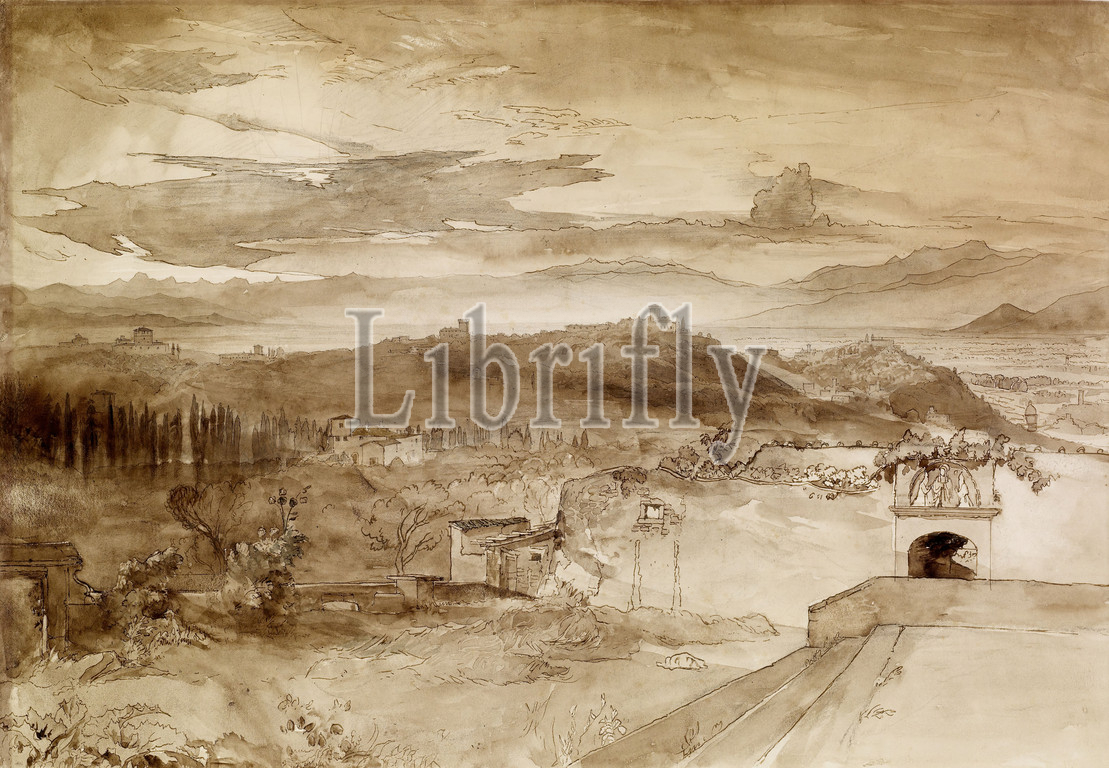 View, Florence, San Miniato, Florence, 1845 Artist, John Ruskin, Landscape, Ink, Pre-Raphaelite, Wash drawing, Italy, Venice