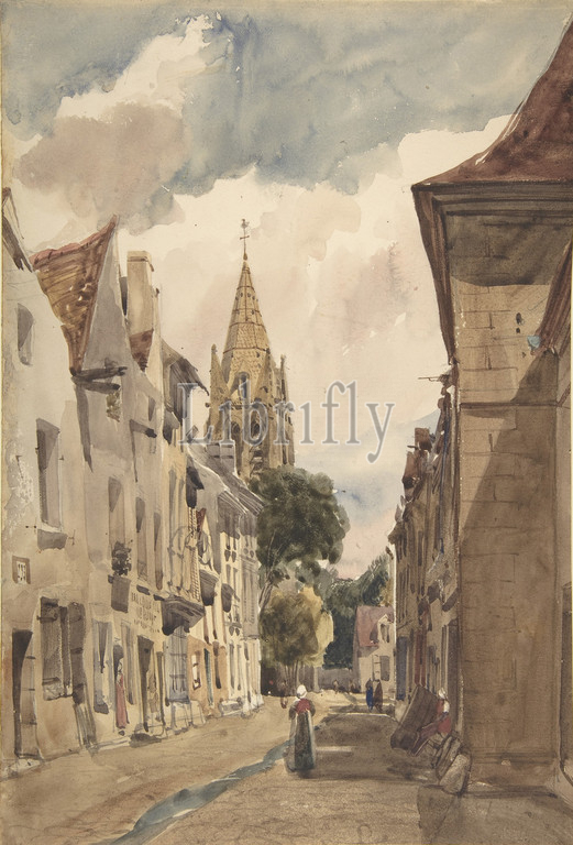 View, Issy, Street, Issy-les-Moulineaux, Seine, 1820–74, Brush, watercolor, graphite, sheet, 12 15/16 x 8 3/4, 32.8 22.3 cm, Drawings, Thomas Shotter Boys, British, Pentonville, 1803–1874, London