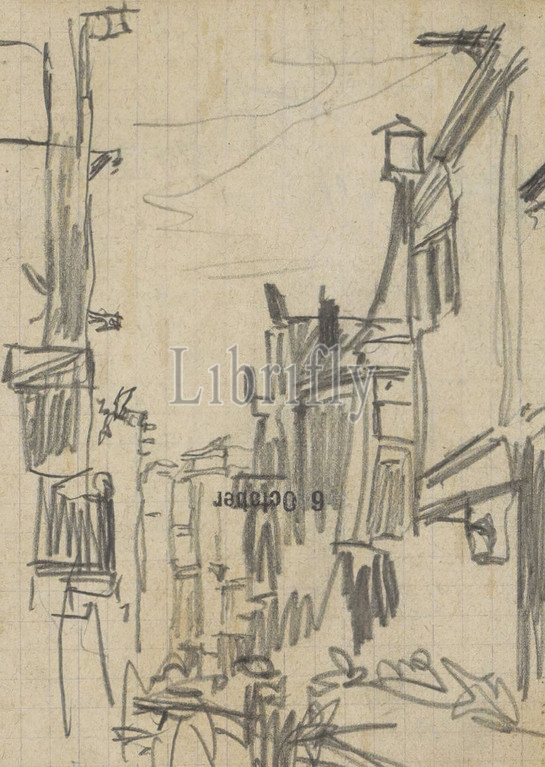 View of the Kalverstraat in Amsterdam. Separate drawing between page 3 and page 4 in a sketchbook with 46 sheets made in Antwerp, Ghent and Amsterdam, View of the Kalverstraat in Amsterdam., George Hendrik Breitner, 1897