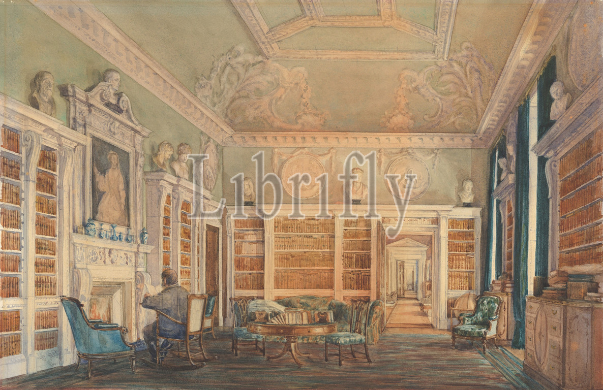 View, Library, Kirtlington Park, Oxfordshire, 1886, Watercolor, graphite, wove paper, sheet, 12 3/16 x 18 1/4, 31 46.3 cm, Susan Alice Dashwood, British, 1856–1922