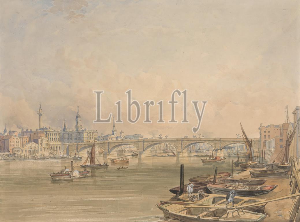 View, London Bridge, Edmund Walker, active 1836–died 1882, 1858, Graphite, watercolor, gouache, medium, slightly textured, cream wove paper, Sheet