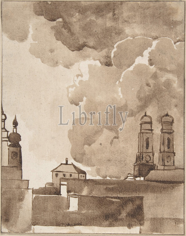 View of Munich with Marienkirche on right, late 18th–early 19th century, watercolor, sheet: 7 1/2 x 6 in. (19.1 x 15.2 cm), Drawings, Franz Kobell (German, Mannheim 1749–1822 Munich)
