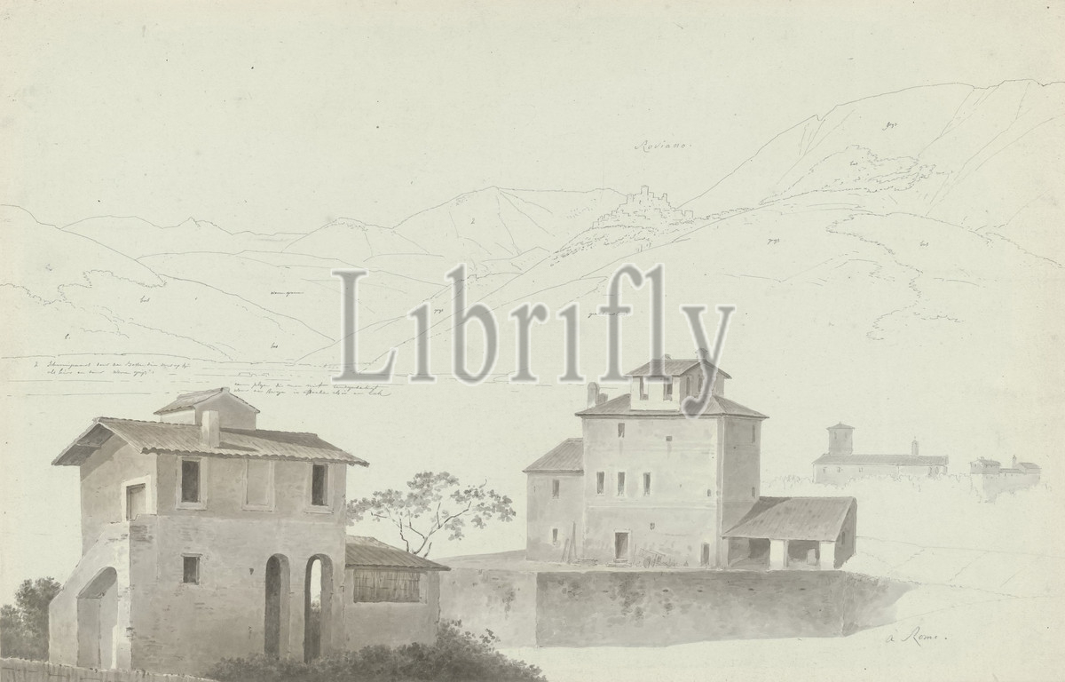 View, Roviano, Houses, Rome, Foreground, view, outlines, buildings, Drawing, group, 46 drawings, studies, mainly cityscapes, landscapes, villa, high, hill, Josephus Augustus Knip, Italy, c, 1809, 1812, paper, graphite, mineral, watercolor, paint, brush