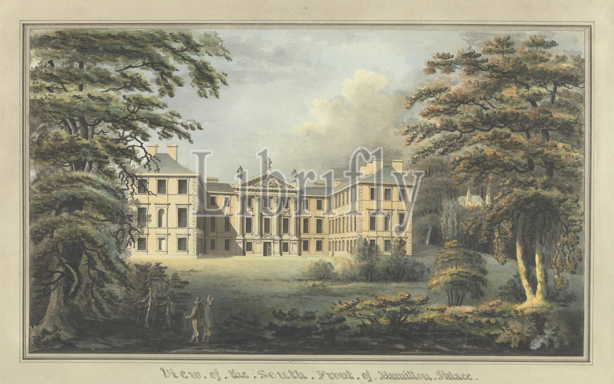 View, South Front, Hamilton Palace, ca, 1800, Watercolor, pen, black ink, medium, slightly textured, cream wove paper, Sheet, architectural subject