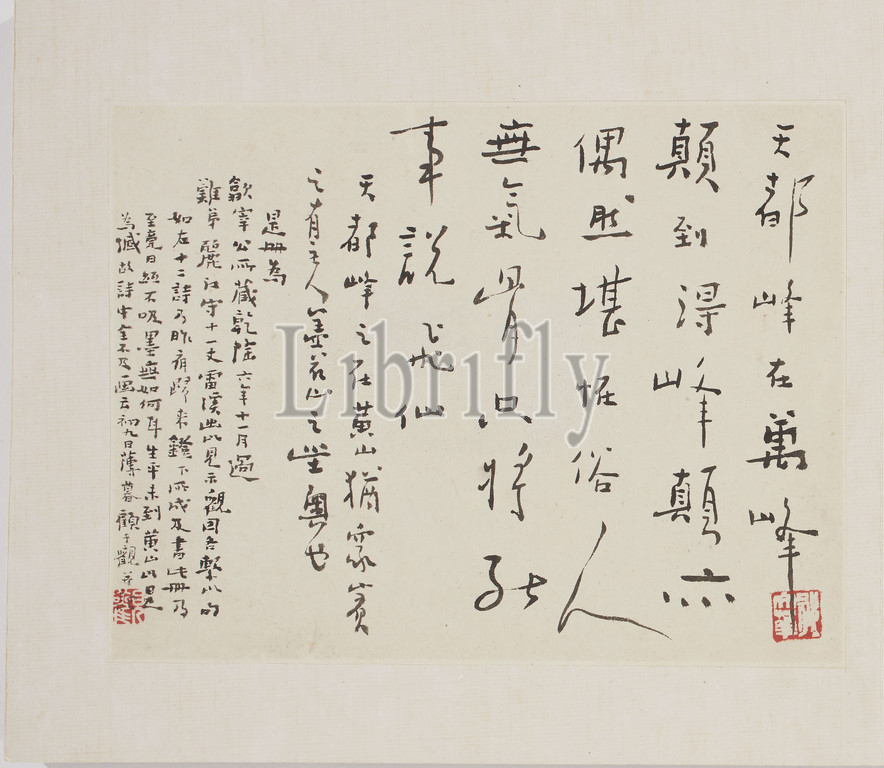 12 Views, Huangshan, Mei Qing, Chinese, 1623-1697, Qing dynasty, period, Kangxi, 1689, ink, silk, 9-11/16 x 10-3/4 x 1-1/4, overall, artist's seals inscribed, Mei Qing colophons, facing page, Gu Yuguan, 1693-, leaf, Asian Art