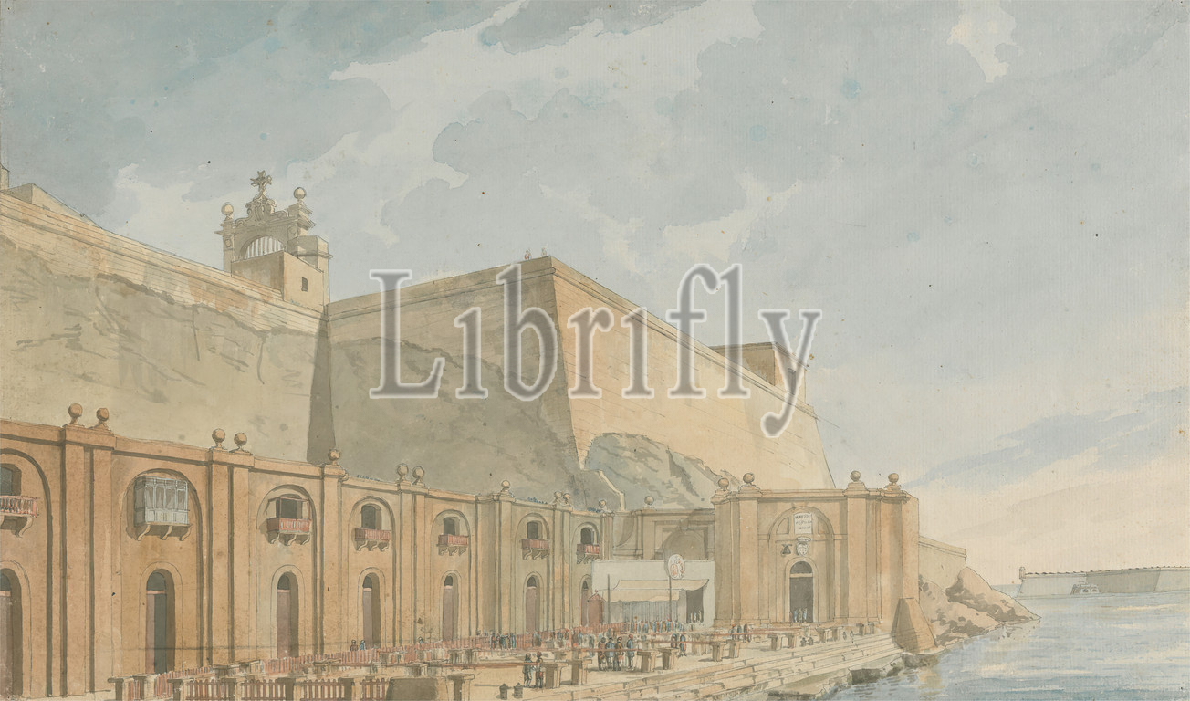 Views, Levant, Malta, Attributed, Willey Reveley, 1760–1799, British, ca, 1785, Watercolor, pen, gray ink, medium, slightly textured, cream laid paper, Sheet, Sheet, arches, architectural subject, buildings, water, Asia, Europe, Levant, Malta