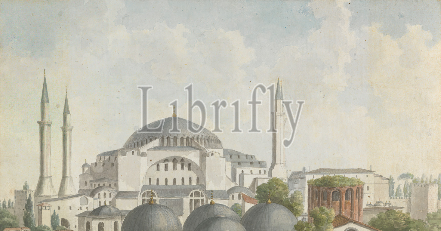 Views, Levant, View, domes, spires, Hagia Sophia, Istanbul, Willey Reveley, 1760–1799, British, ca, 1785, Watercolor, pen, gray ink, medium, slightly textured, cream laid paper, Sheet, Sheet, architectural subject, cityscape, domes, mosque, religion, spires, Asia, Asia, Ayía Sofía, Constantinople, Istanbul, Levant, Marmara, Turkey