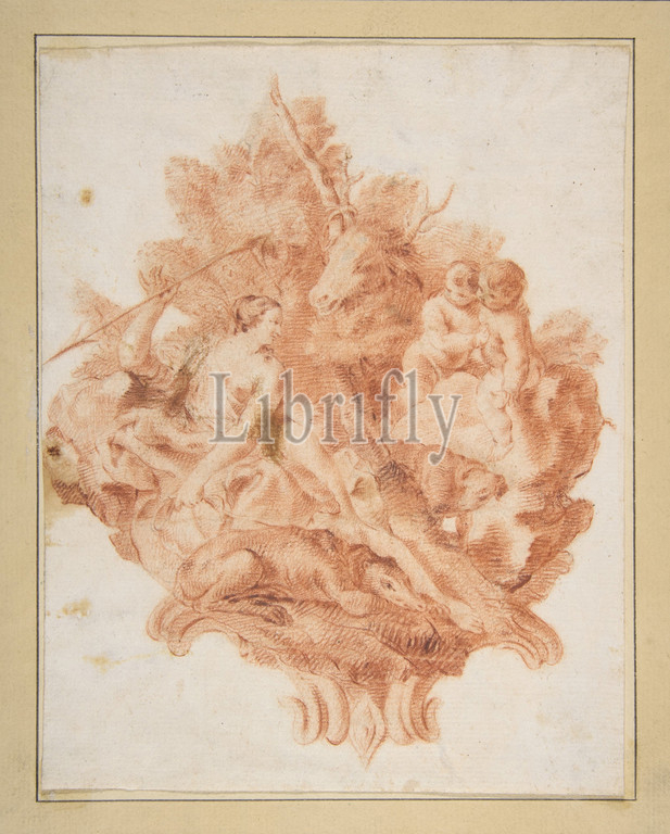 Vignette Illustrating Torquato Tasso, Gerusalemme Liberata, X, 78, 1745, Red chalk, traces, graphite, sheet, 8 1/4 x 6 1/2, 21 16.5 cm, Drawings, Giovanni Battista Piazzetta, Italian, Venice, 1682–1754, elegantly, rendered, pastoral, scene, conceived, Giovan Battista, Piazzetta, preliminary study, engraving, folio 126, bis, recto, 1745 edition, Torquato, epic, masterpiece, La Gerusalemme, Liberata, Jerusalem Delivered