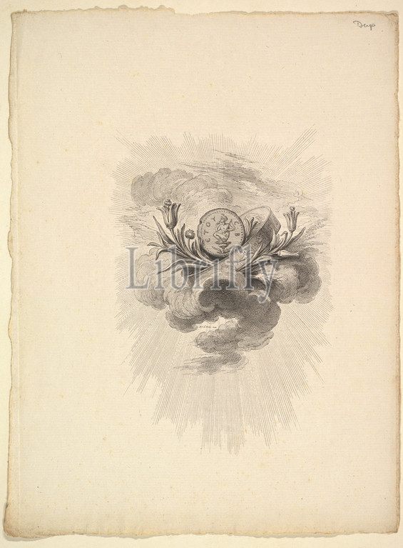 Vignette with a Medal depicting Harpocrate and Lotus Flowers, Volume I, Page 12, from Description des Principales Pierres gravées du Cabinet de S.A.S. Monseigneur le Duc d'Orléans Premier Prince du sang. A Paris chez M. l'abbé de la Chau au Palais-Royal M. l'abbé Le Blond au collége Mazarin Et chez Pissot, libraire, quai des Augustins, 1778–80, Etching and engraving; third state of three (Bocher), Sheet: 11 5/8 × 8 11/16 in. (29.5 × 22 cm), Prints, Augustin de Saint-Aubin (French, Paris 1736–1807 Paris), This vignette was included in Description des Principales Pierres gravées du Cabinet de S.A.S. Monseigneur le Duc d'Orléans Premier Prince du sang. A Paris chez M. l'abbé de la Chau au Palais-Royal M. l'abbé Le Blond au collége Mazarin Et chez Pissot, libraire, quai des Augustins (1780)
