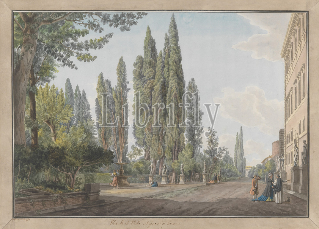 Villa Montalto Negroni, ca, 1780, Etching, watercolor, gouache, Mat, 23 1/4, 32 3/16, 59, 81.8 cm, Prints, Giovanni Volpato, Italian, Bassano, 1732–1803, Rome, Abraham Louis Rodolphe Ducros, Swiss, Yverdon, 1748–1810, Lausanne