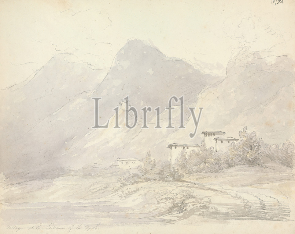 Village, Entrance, Tyrol, Sir Robert Smirke, younger, 1781–1867, British, 1802-1804, Watercolor, graphite, moderatly thick, moderately textured, beige, wove paper, Sheet