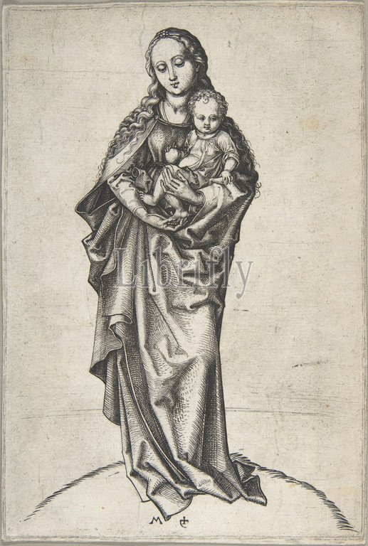 Virgin, Child, Apple, ca, 1475, Engraving, Sheet, 6 13/16 x 4 5/8, 17.3 11.7 cm, Prints, Martin Schongauer, German, Colmar ca., 1435/50–1491, Breisach