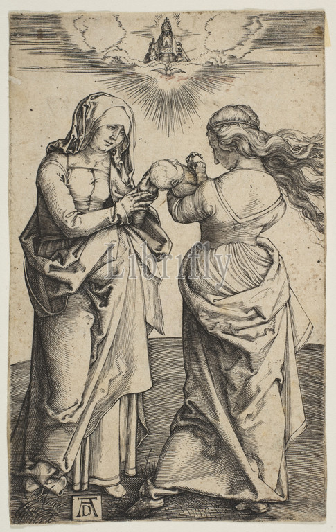 Virgin, Child, Infant Christ, Saint Anne, ca, 1500, Engraving, Sheet, 4 7/16, 2 13/16, 11.3, 7.1 cm, Prints, Albrecht Dürer, German, Nuremberg, 1471–1528