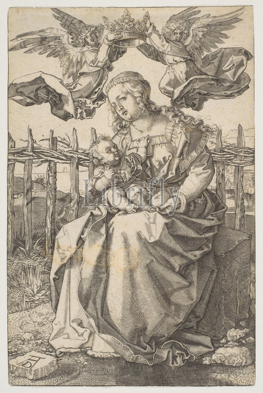 Virgin Crowned, Two Angels, n.d, Engraving, Sheet, 5 11/16, 3, 14.5, 9.4 cm, Prints, After Albrecht Dürer, German, Nuremberg, 1471–1528