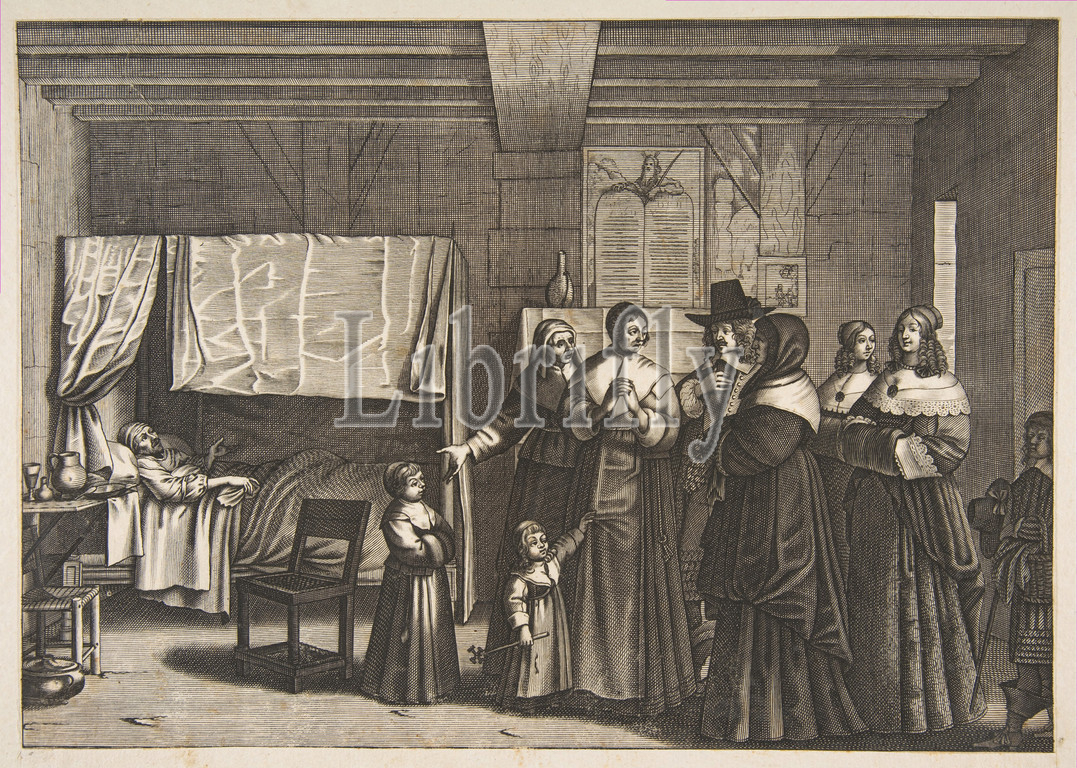 Visiting, Sick, 1635, Engraving, Sheet, trimmed, 8 9/16, 11 7/8, 21.7, 30.1 cm, Prints, Anonymous, After Abraham Bosse, French, Tours, 1602/1604–1676, Paris