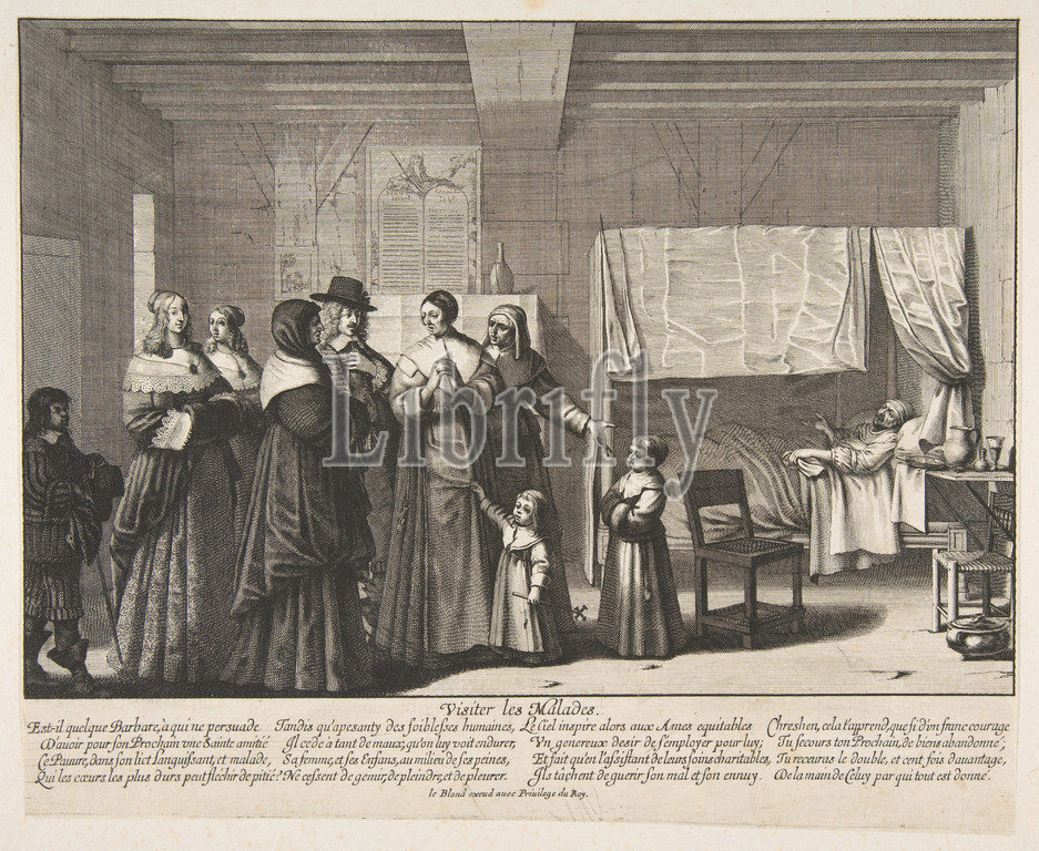 Visiting, Sick, Visiter les malades, Etching, engraving, first state, two, Join-Lambert, Préaud, sheet, 10 x 12 3/8, 25.4 31.5 cm, Prints, Abraham Bosse, French, Tours, 1602/1604–1676, Paris