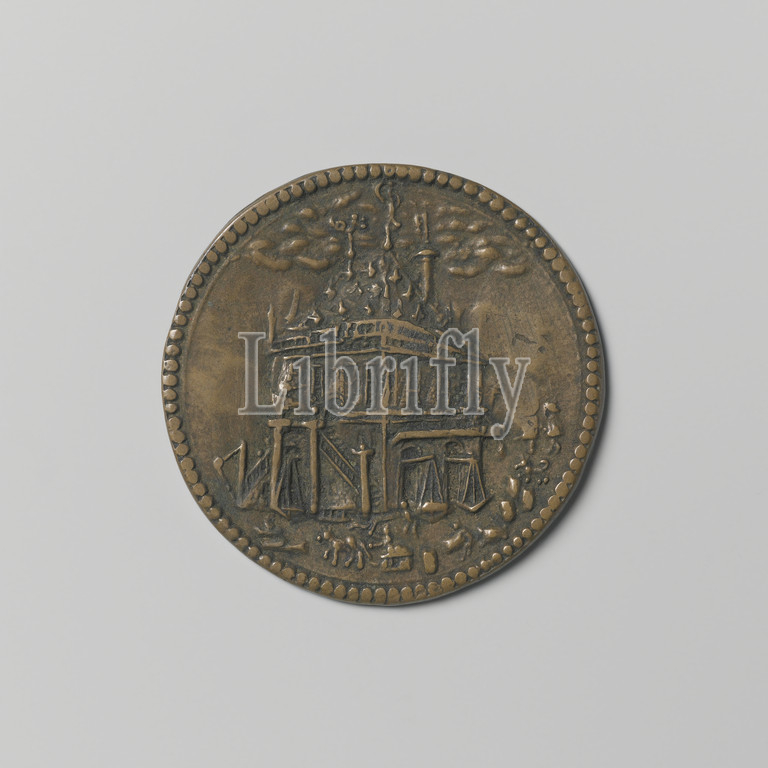 Waagragersgilde, Amsterdam, guild token, Haerlemmer veem, no, 1, Brass medal, Front, view, Waag building, Reverse, inscription, number 1, Hans Rogiers van Harelbeke, 1598, 1638, brass, alloy, engraving