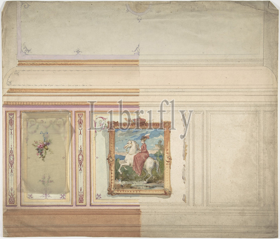 Wall Design including an Equestrienne Portrait, 19th century, Ink and watercolor, Anonymous, British, 19th century
