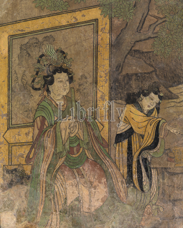 wall painting fragment, Unknown, Yuan dynasty, 1300s, ink and colors on stucco, 30 in. x 25-9/16 in., Chinese, Asian Art