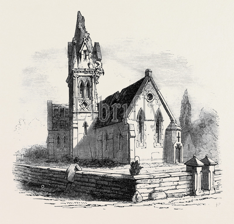 walton, house of God, church, stafford, struck, lightning, great britain, uk, 1845 engraving, engraved image, history, illustrative technique, engravement, victorian, arts, culture, retro styled, vintage, retro, arkheia