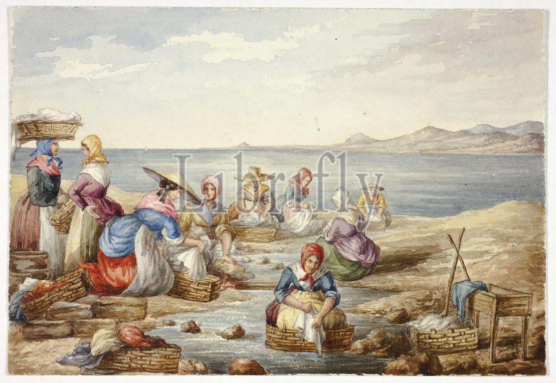 Washerwoman at Nice, February 1842, Elizabeth Murray, English, c. 1815-1882, England, Watercolor over graphite on cream wove paper, 176 mm × 259 mm