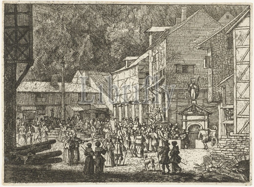Spring, Fluids, Earth, View, Crowded, Enclosed, Houses, Square, Waterbon, Handed, Statue, Saint, Water, Well, City, Distributed, Allaert van Everdingen, 1631 - 1675