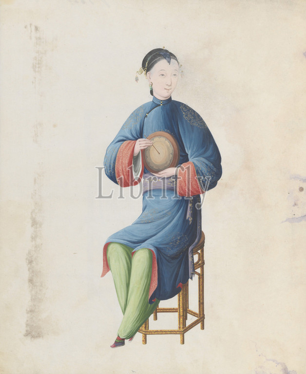 Watercolor of musician playing diangu, late 18th century, China, Chinese, Watercolor on paper, Overall: 43.2 x 35.6 x 1.3cm (17 x 14 x 1/2in.), Works on Paper