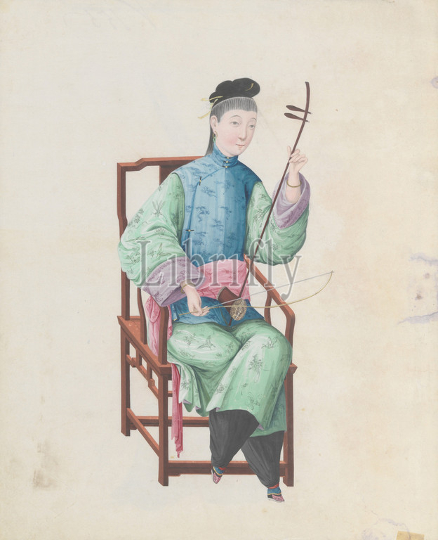 Watercolor of musician playing gaohu(?), late 18th century, China, Chinese, Watercolor on paper, Overall: 43.2 x 35.6 x 1.3cm (17 x 14 x 1/2in.), Works on Paper