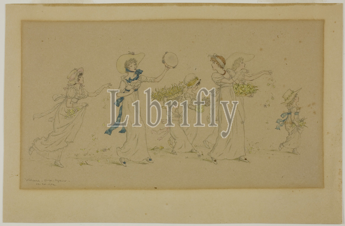 Welcome Once Again, 1884, Kate Greenaway, English, 1846-1901, England, Graphite, watercolor, cream wove paper, discolored, tan, 166