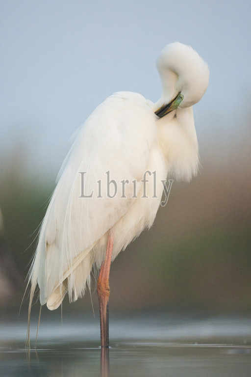 Western Great Egret preening, Ardea alba, Hungary