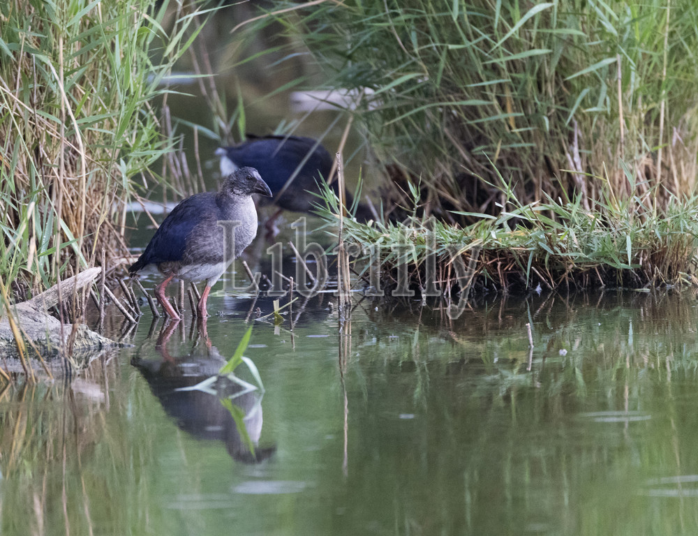 Western Swamphen (Porphyrio porphyrio) in small marshland in Spain, Porphyrio porphyrio, Spain