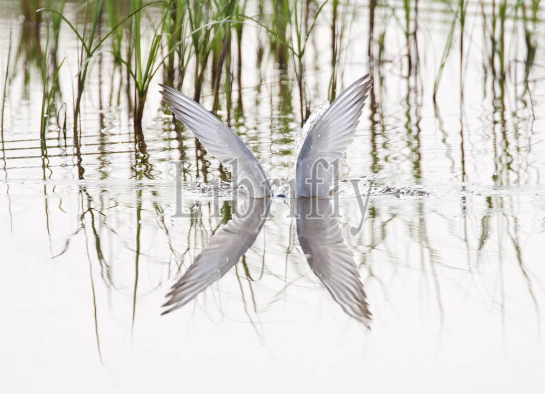 Whiskered Tern diving for food, Chlidonias hybrida, Greece
