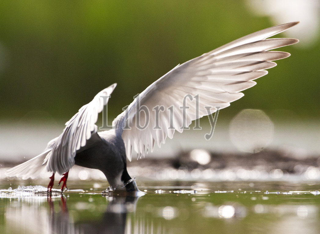 Whiskered Tern fishing, Chlidonias hybrida