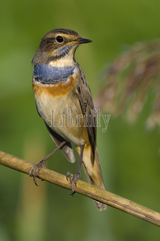 White-Spotted Bluethroat perched on branch, Luscinia svecica, Italy