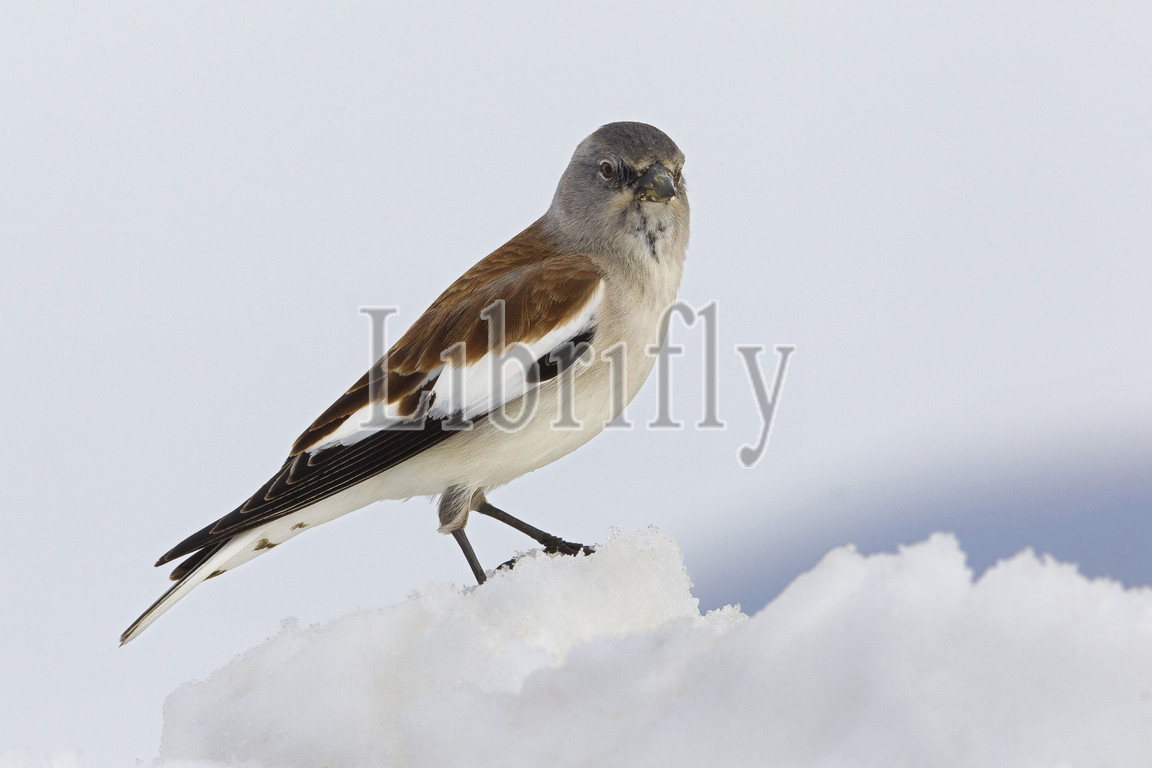White-winged Snowfinch, Male, perched, snow, Montifringilla nivalis, nature, bird, animal, wildlife, wild, fauna, natural, feather, sky, beak, wing, outdoor, freedom, colourful, Liszt, Natural History, ornithology, vertebrate animals, photography, color image