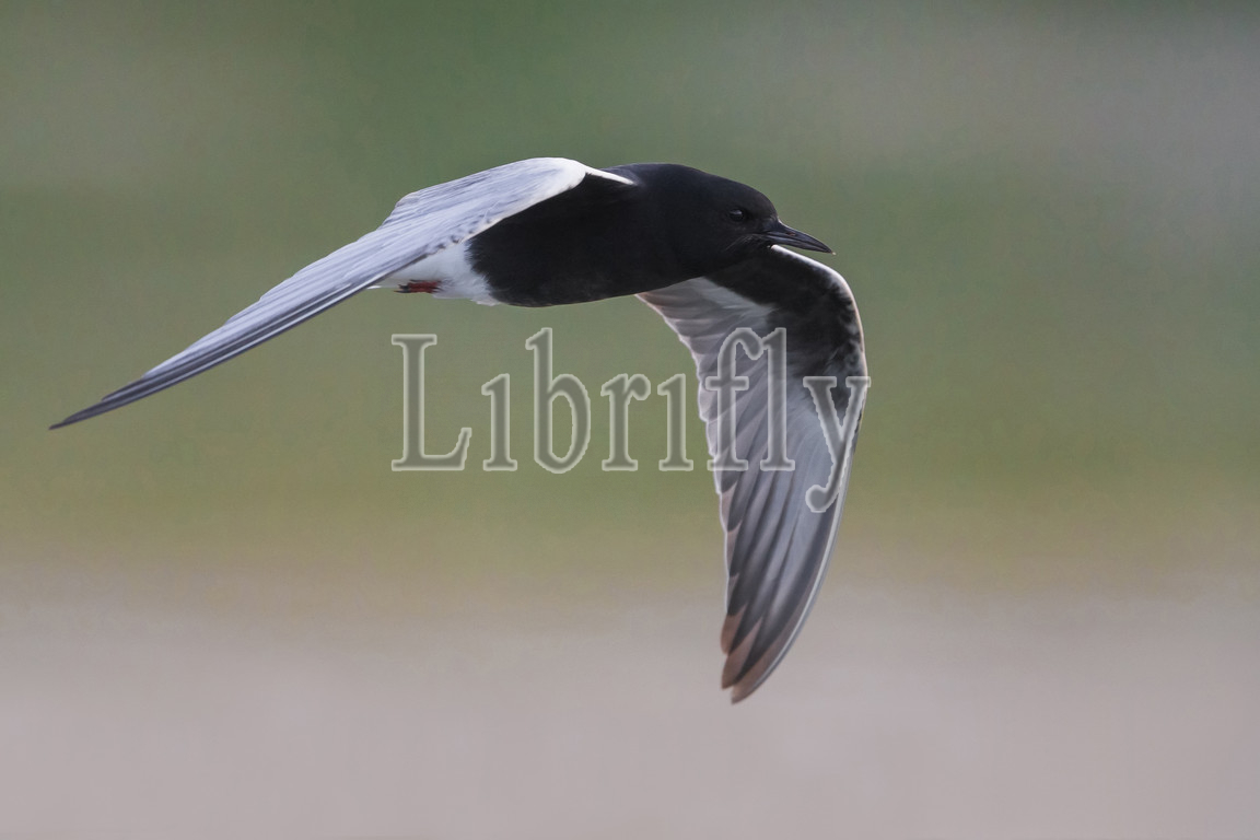 White-winged Tern adult in flight, Chlidonias leucopterus, Italy