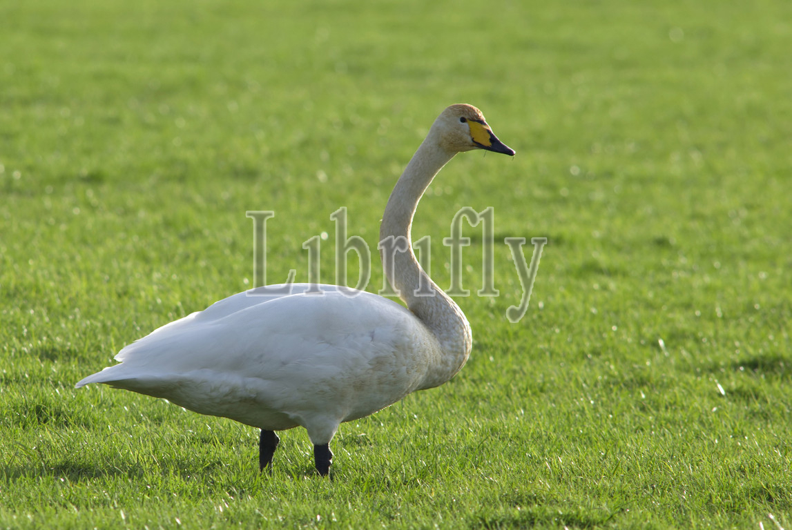 Whooper Swan adult in grassland Netherlands, Cygnus cygnus