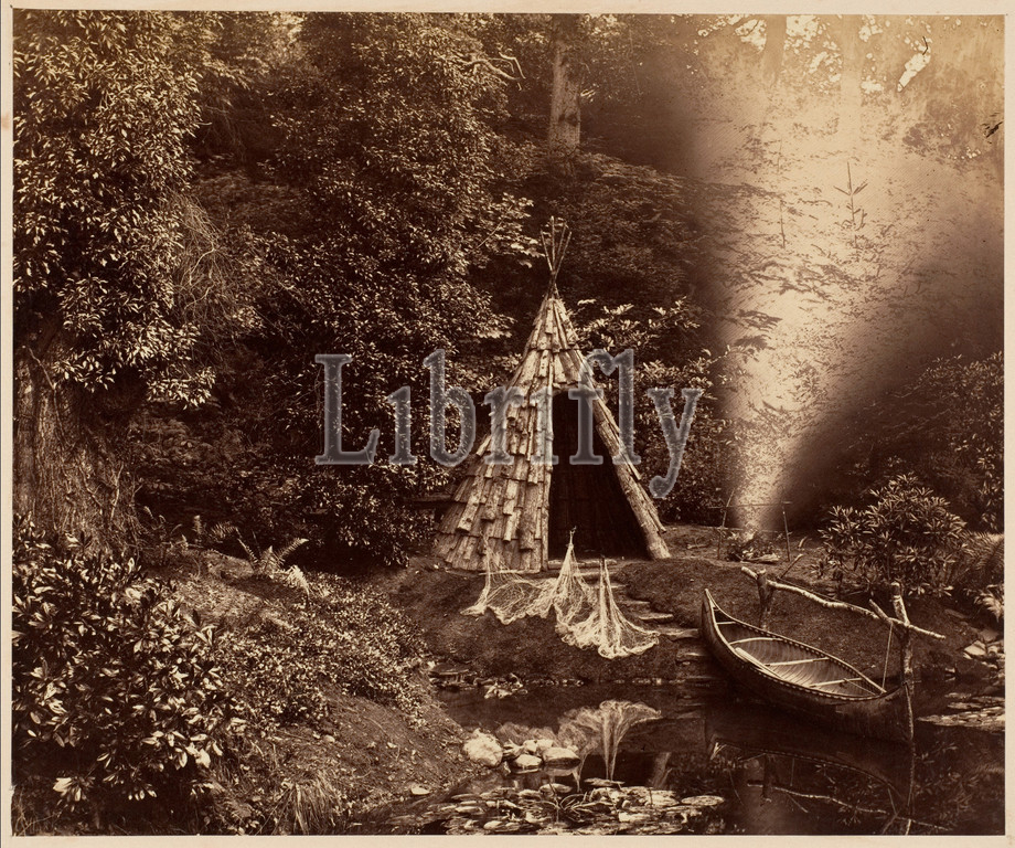 Wigwam, Canadian Scene, Penllergare, ca, 1855, Albumen silver print, glass negative, Image, 18.5 x 22.1 cm, 7 5/16 8 11/16, Photographs, John Dillwyn Llewelyn, British, Swansea, Wales, 1810–1882, Within, week, Talbot, public presentation, photogenic drawing, process, February 1839, Llewelyn experimented, new, drawing, technique, owed, early introduction, medium, wife, Emma Thomasina Talbot, first cousin, inventor