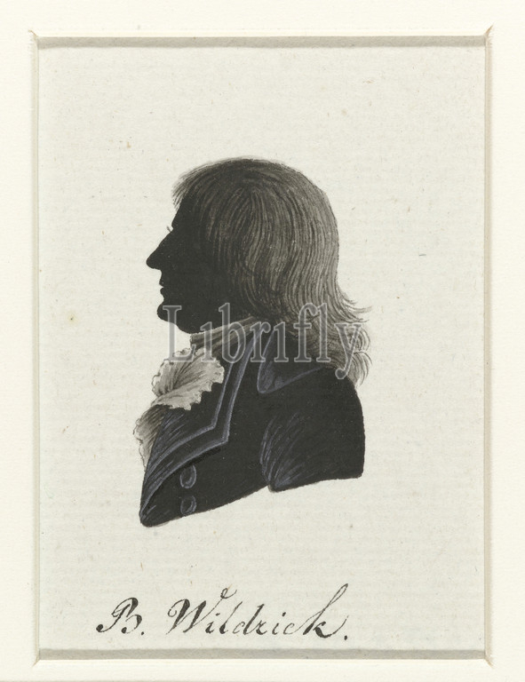 B, Wilderick, Representatives, first National Assembly, Batavian Republic, series title, Silhouette, bust, profile, left, Loose hair hanging down, bridge, Jabot, Inscription, o, Hague, Zutphen, Berent Wilderick, National Assembly, Hausdorff, Netherlands, 1796, paper, India ink, ink, drawing